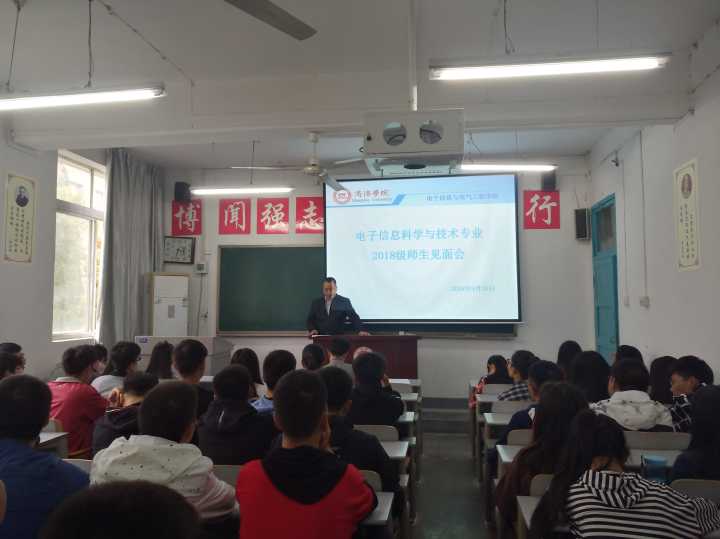 9月26日,suncitygroup太阳集团电子信息科学与技术专业在2号楼206教室召开2018级新生师生见面会,电子信息科学与技术专业2018级64名新生及10名教师参会,会议由电子信息科学与技术系主任何建强主持。