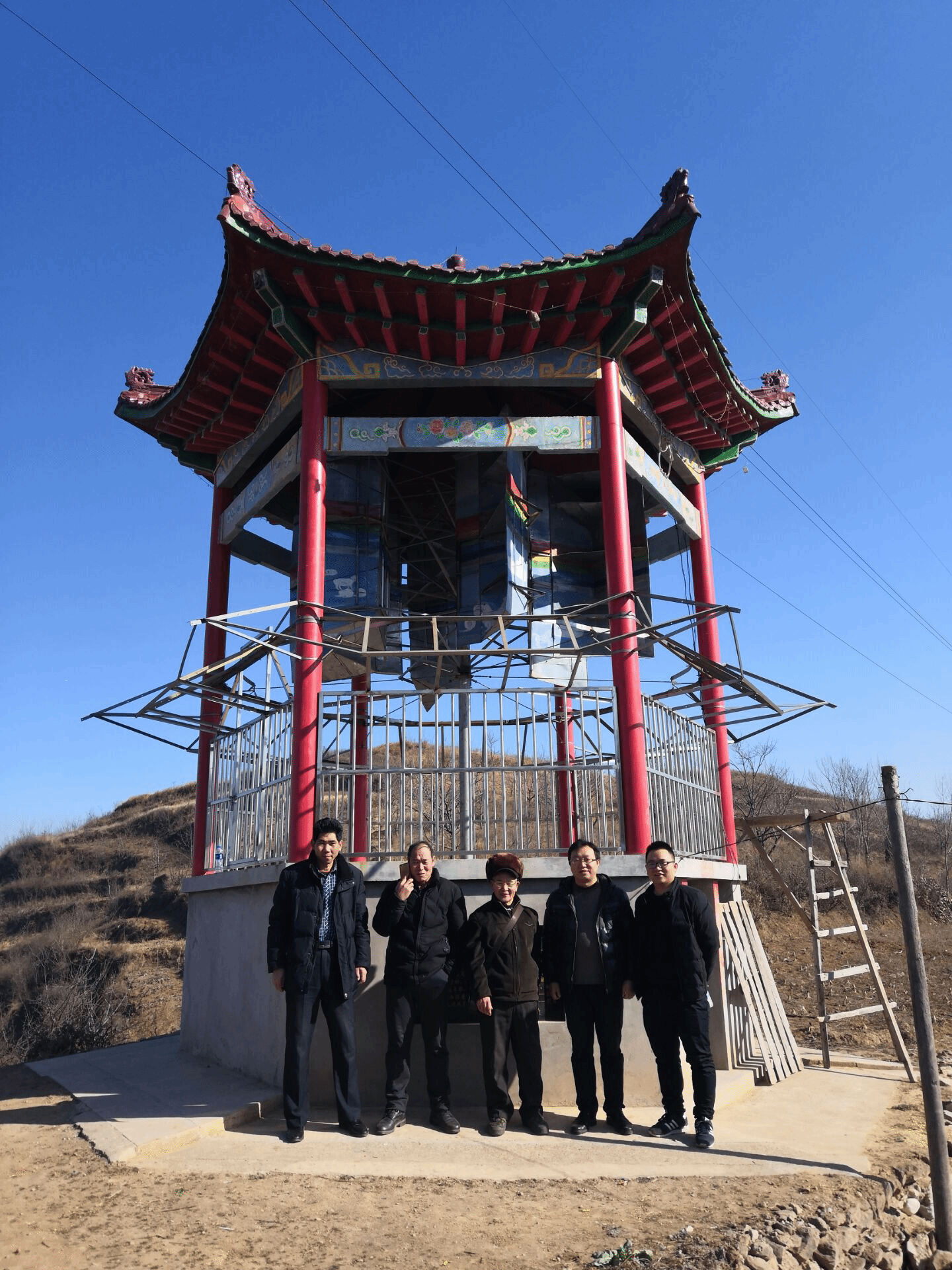 1月23日上午,suncitygroup太阳集团经理袁训锋、电气工程系主任张商州、教师徐晓龙,应商洛市小龙驹风能研发有限公司董事长刘勇邀请,赴夜村镇河源村参观其设计的亭台式风力发电装置,该风力发电装置位于夜村镇河源村风垭梁。
