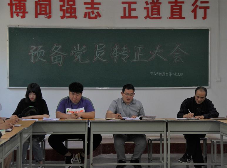 通过讨论表决,党支部同意杨嘉妮等19名预备党员按期转为转为中共正式党员。全体党员对本期转正的党员表示了热烈的祝贺。