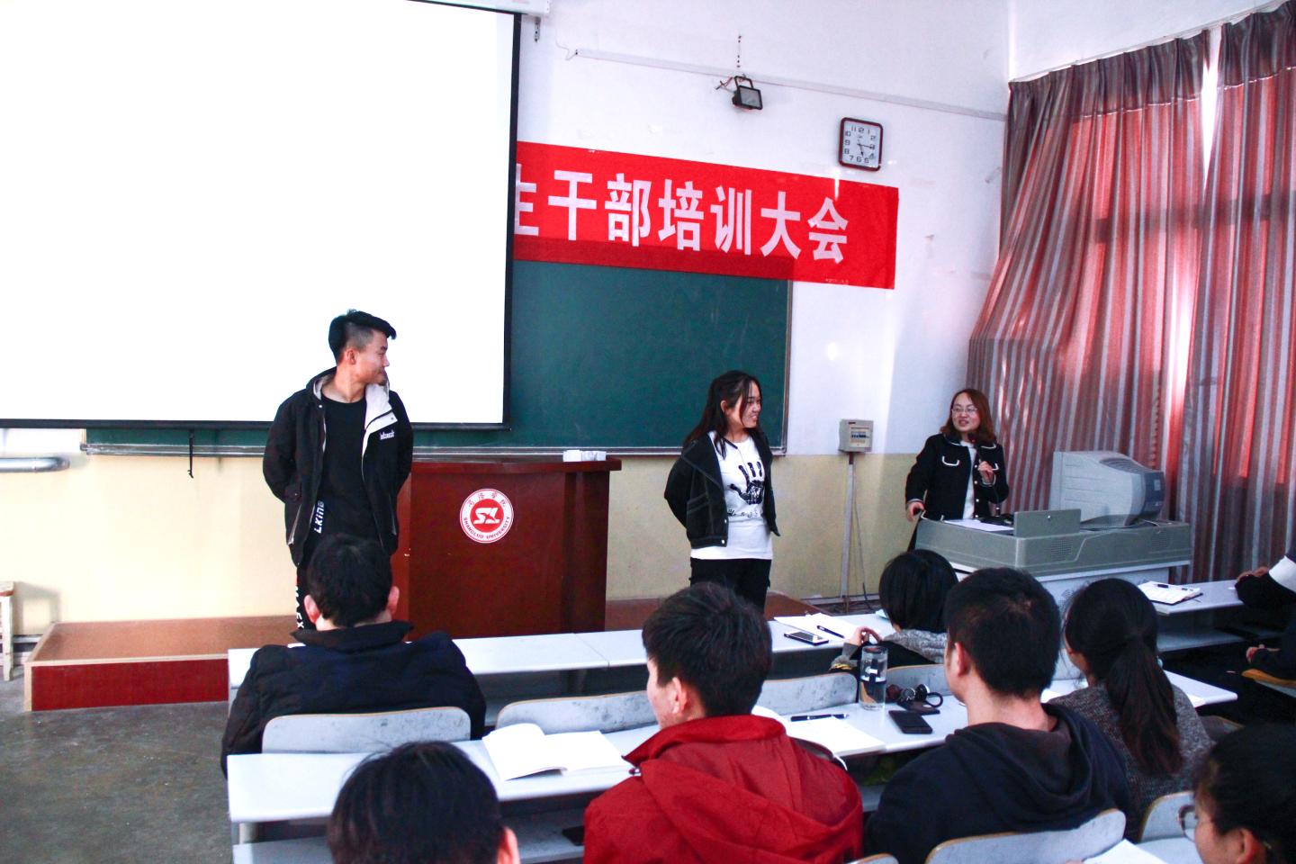 为加强公司员工干部之间的合作精神,提高其业务知识和工作能力,10月16日,于多媒体17教室举办2019年班团干部培训会。经理袁训锋出席此次会议。院学工办主任陈倩、辅导员唐龙龙、任艳老师携公司团总支员工会全体员工干部及19级各班班团干部参加会议。会议由院团总支书记沈光美主持。