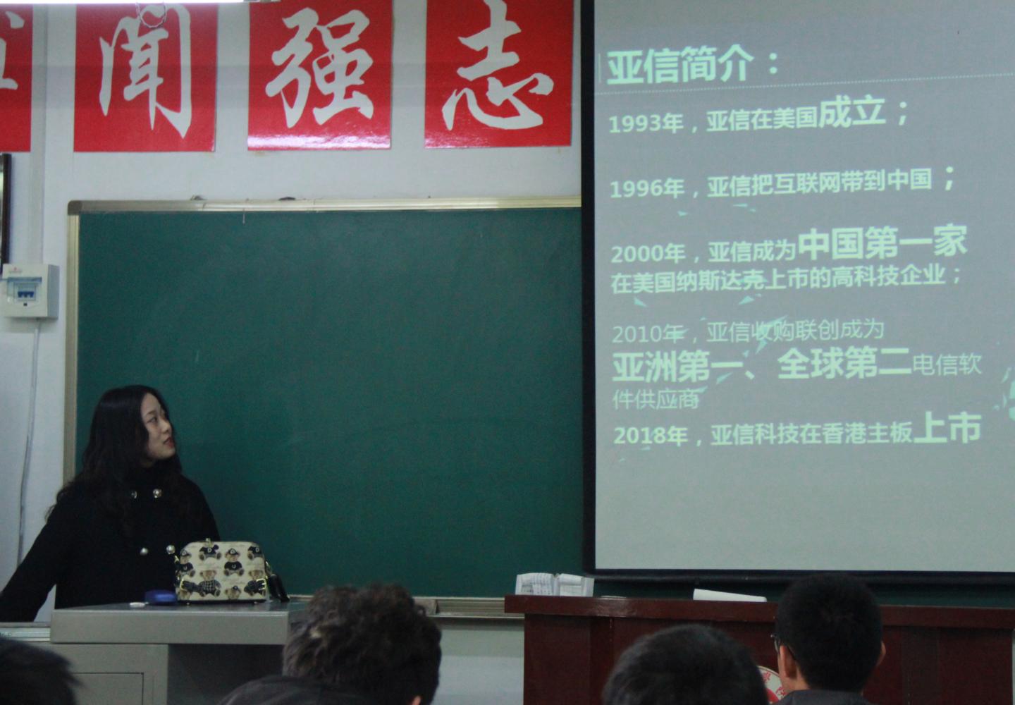 为认真落实公司毕业生就业工作,大力构建毕业生与用人单位的交流平台,积极为用人单位输送应用型人才,12月17日,suncitygroup太阳集团于在2#201教室举办了亚信科技有限公司2020届毕业生招校园专场招聘会。此次招聘会由亚信科技人力资源主管徐乙丹宣讲。