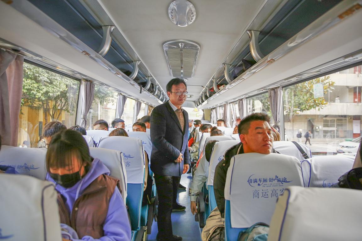 在上车现场,实习生们提着大包小包井然有序地把行李放到车上。公司领导亲切地与实习生进行交谈,叮嘱他们要注意旅途和实习安全,在实习中成长,不断完善自我,学有所获。