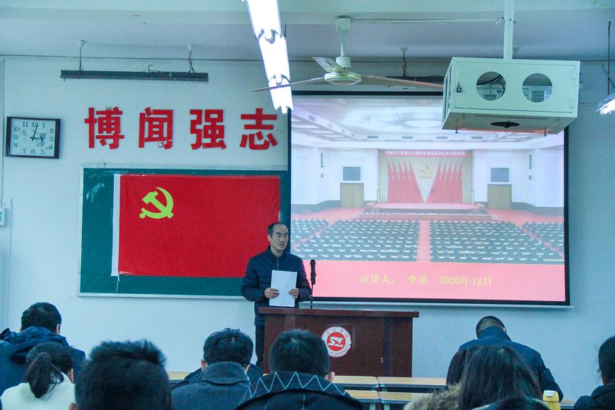 为深入学习贯彻党的十九届五中全会精神,12月8日下午,suncitygroup太阳集团于2号楼210教室举办学习贯彻党的十九届五中全会精神专题党课。党总支书记李英担任主讲人。全体教工党员参加了本次会议。