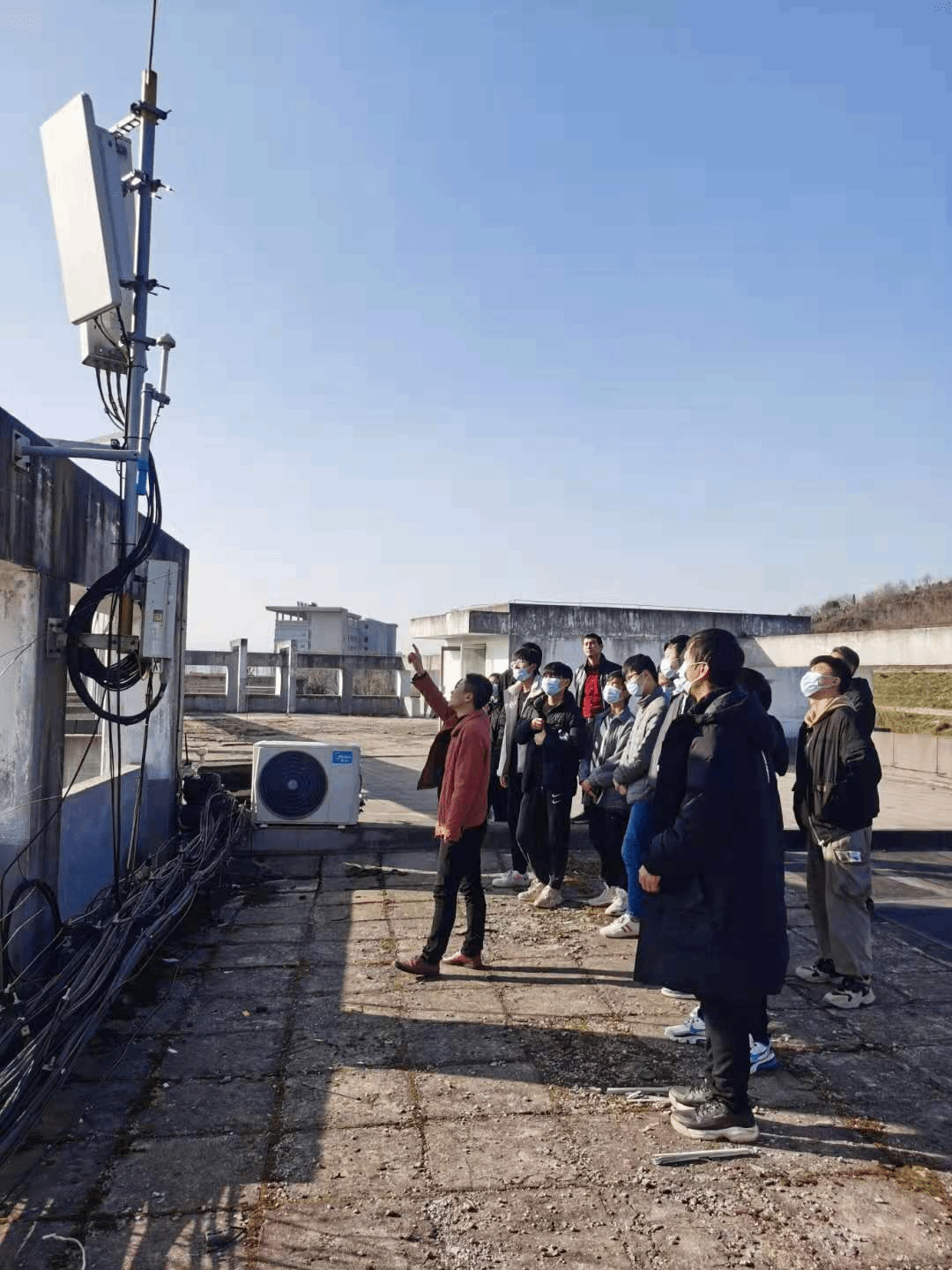 10日工程师米琳和带队老师带领员工去6号宿舍楼通讯交换机房、基站等进行实地参观并针对实物进行知识讲解。