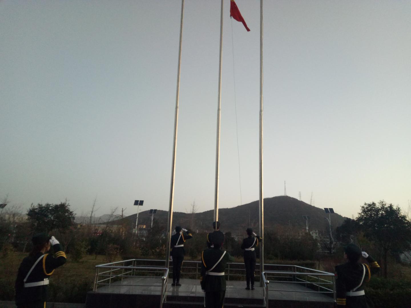 7点20分,伴随着《义勇军进行曲》的雄壮乐曲,鲜艳的五星红旗冉冉升起。在升国旗过程中,全体人员行注目礼,面对五星红旗,全体师生心潮澎湃,肃然起敬。