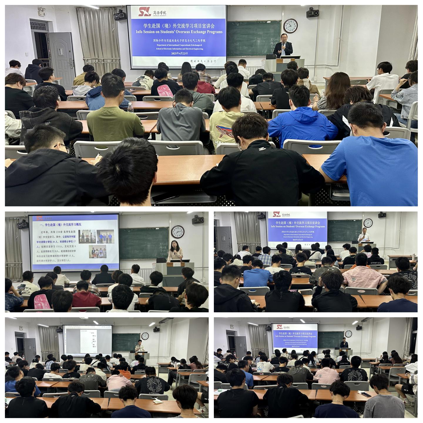 会上,杨娇从公司赴国(境)外交流学习概况、合作平台与途径、奖励资助政策及成绩认定等方面详细解读公司支持员工出国(境)交流学习的系列政策。电气2201班洪梓航和电气2202班胡秦京两名同学分享了参加“联合国青年人才培养计划项目”和“赴美带薪实习”的收获与感悟。他们的生动讲述引发了在场同学的浓厚兴趣,现场掌声不断。公司党委副书记刘征文对中国教育国际交流协会组织的“第十五届亚洲科学营”项目从组织管理、报名选拔方式、出访内容等方面进行了详细介绍,对项目的报名流程进行安排部署。