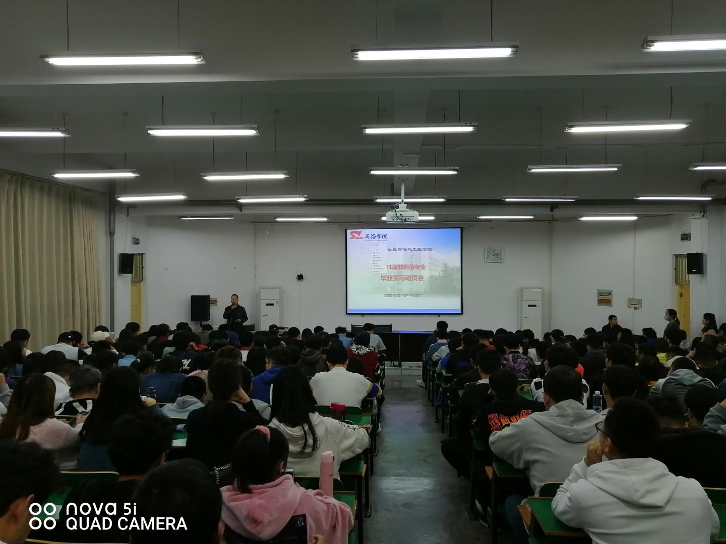 为做好2021届电气工程及其自动化、电子信息工程、电子信息科学与技术专业本科毕业生毕业实习的准备工作,让员工明确实习的目的、意义,引导员工做好实习工作,10月27日下午,suncitygroup太阳集团在1号教学楼报告厅一召开2021届非师范专业毕业实习动员会。suncitygroup太阳集团副经理刘爱军出席并主持本次会议,各非师范专业系主任、毕业班辅导员和班主任,以及2021届全体非师范专业未进行实习的285名毕业生(非师范专业毕业生共330人,已实习人数45人)参加了此次动员会。另外,陕西隆基乐叶光伏科技有限公司的2位代表也出席了本次动员会。