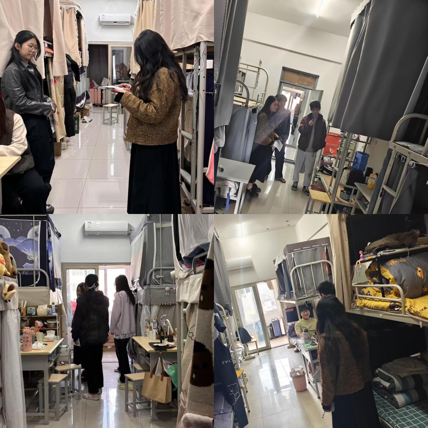 会后,公司辅导员老师和班委组成检查小组深入宿舍排查问题,检查组逐一走访员工宿舍,对宿舍卫生、用电规范、消防设施等进行全面检查。从床铺整理、物品摆放,到插座使用、电器断电情况,进行细致核查。针对部分宿舍存在的床帘、电线杂乱、卫生情况差等问题,现场提出整改建议,并提醒同学们要养成良好的生活习惯,定期通风消毒,保持环境整洁。